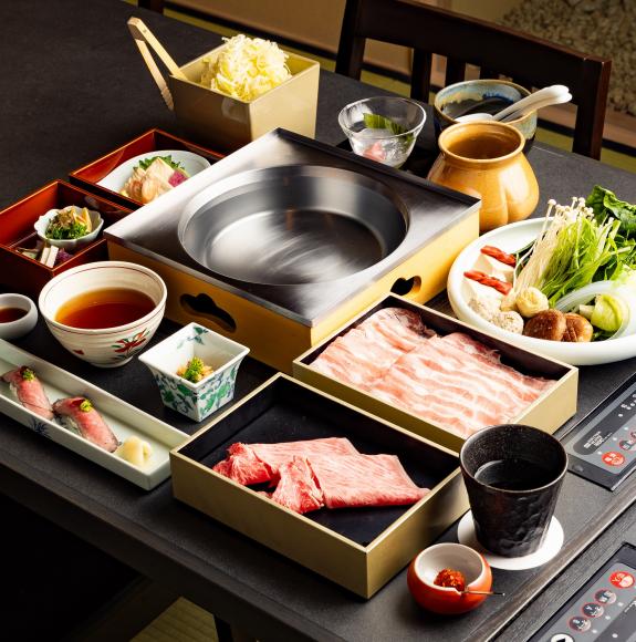 つゆしゃぶや近江牛しゃぶしゃぶ、すき焼きは、ランチやディナーに。 昼夜を問わずお召し上がりいただけますので、ぜひお楽しみください。